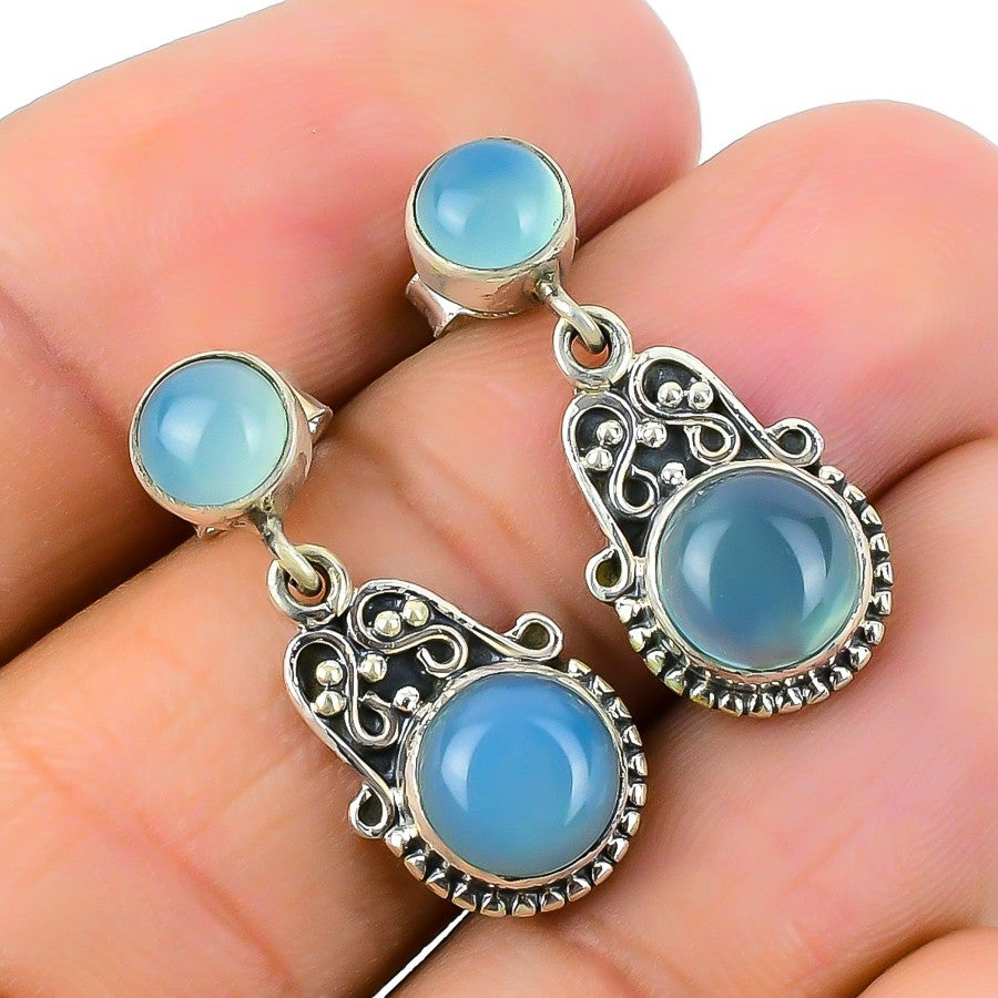 Daughters Day Sale Aquamarine Stone Sterling Silver Drop Elegant Trendy Earrings