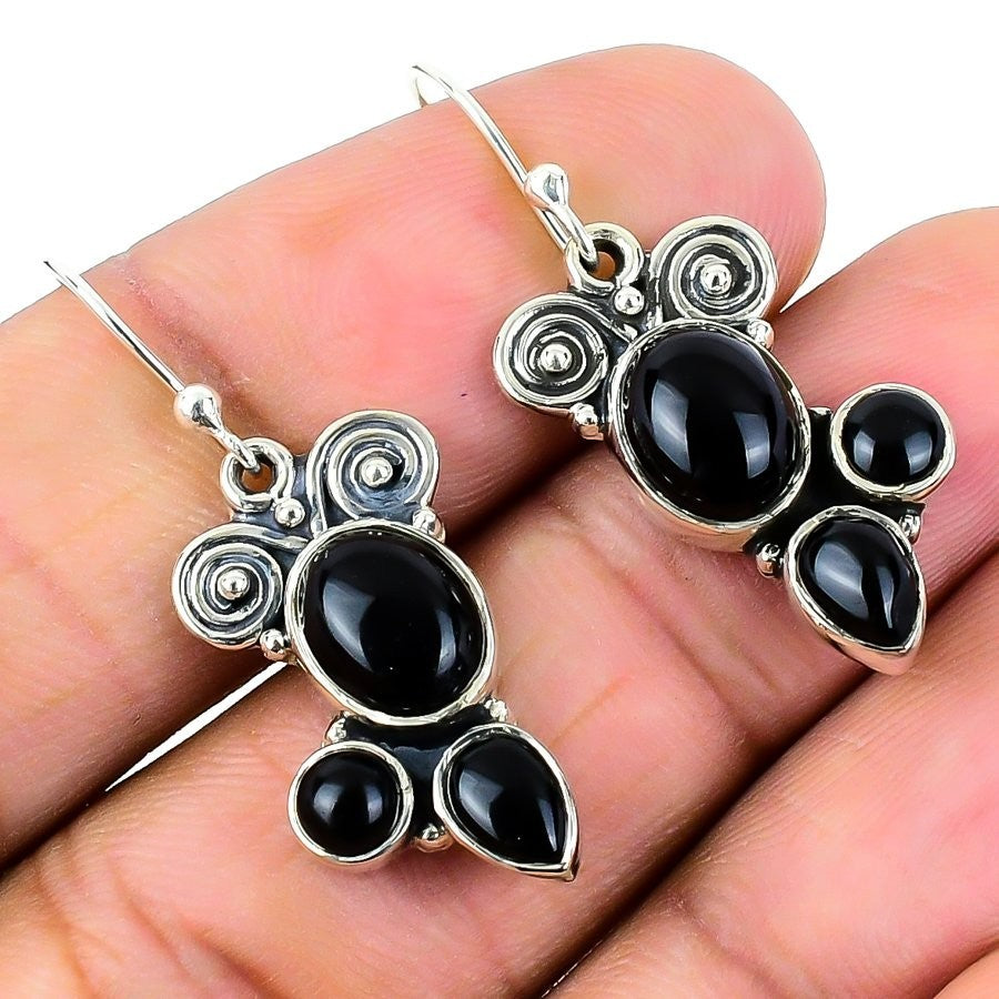 Daughters Day Sale Black Onyx Stone Solid Silver Dangling Handmade Hook Earrings