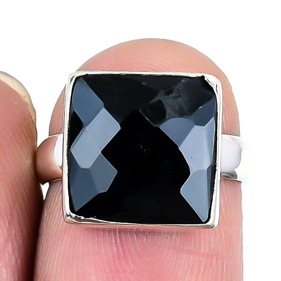 Daughters Day Sale Black Spinel Gemstone Statement Ring 925 Solid Silver US 5.5