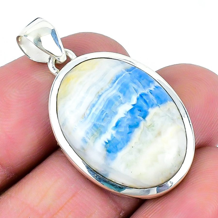 Daughters Day Sale Blue Scheelite Stone 925 Sterling Silver Boho Pendant Jewelry