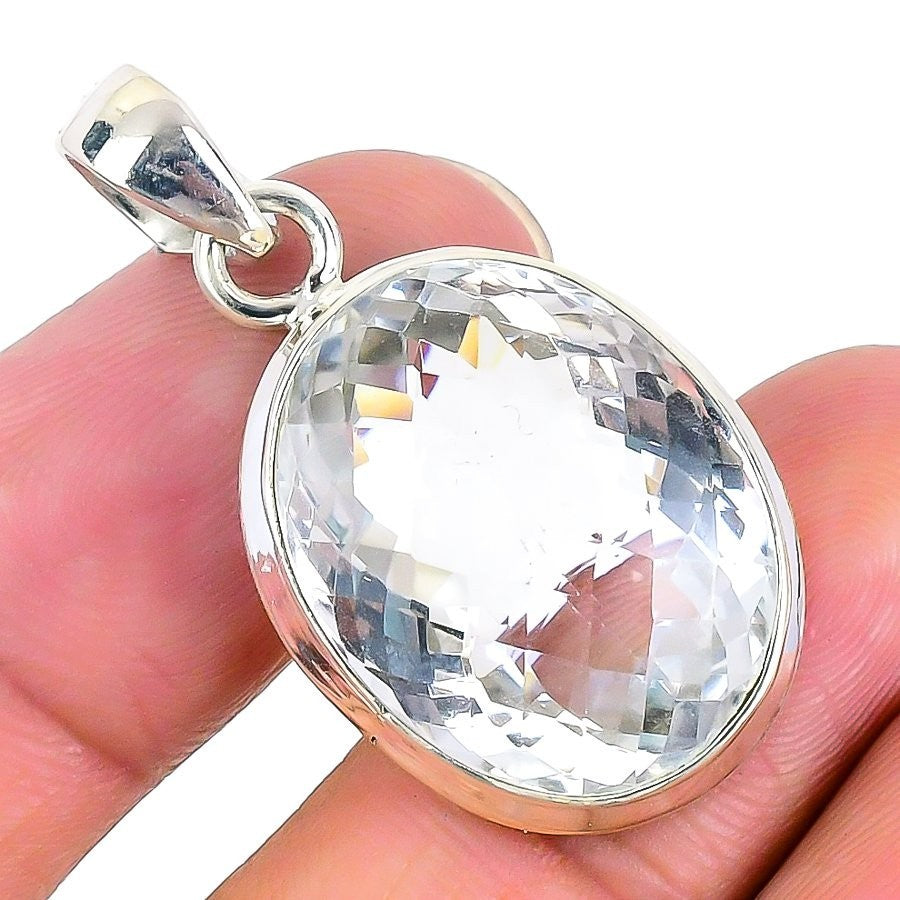 Daughters Day Sale Crystal Gemstone Solid Sterling Silver Sister Bezel Pendant