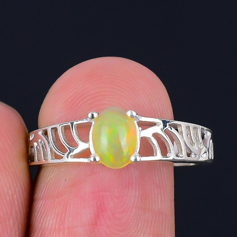 Daughters Day Sale Ethiopian Opal Stone 925 Silver Statement Trendy Ring Jewelry