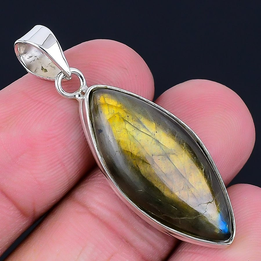 Daughters Day Sale Labradorite Stone Sterling Silver Channel Set Artisan Pendant