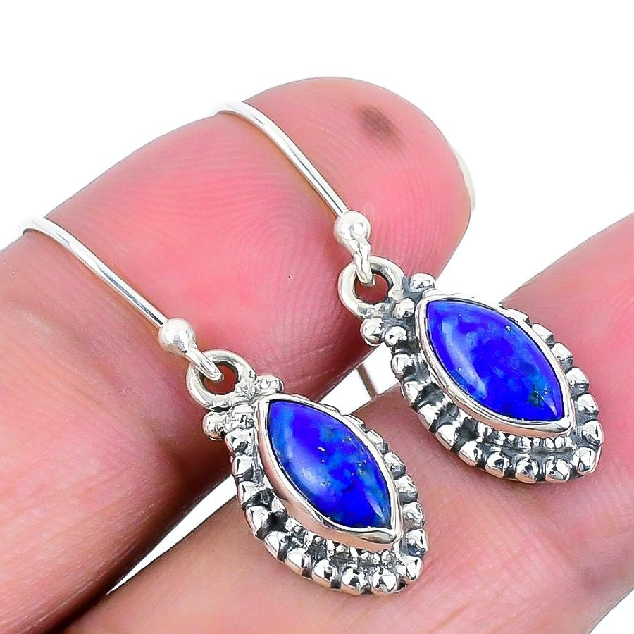 Daughters Day Sale Lapis Lazuli Gemstone 925 Sterling Silver Wife Drop Earrings