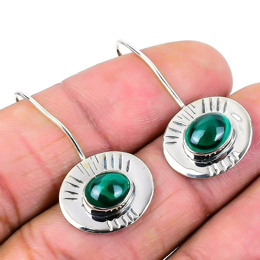 Daughters Day Sale Malachite Stone Sterling Silver Hook Dangle Wedding Earrings