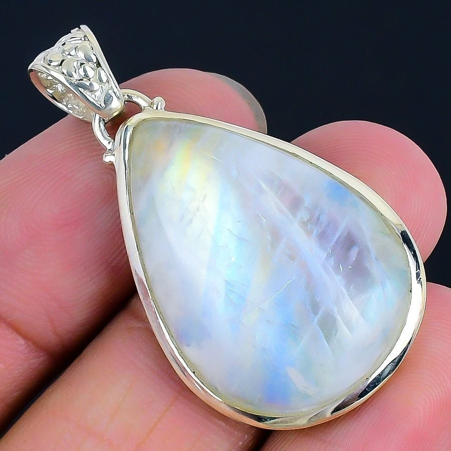 Daughters Day Sale Moonstone Gemstone 925 Silver Bezel Ethnic Pendant Jewelry