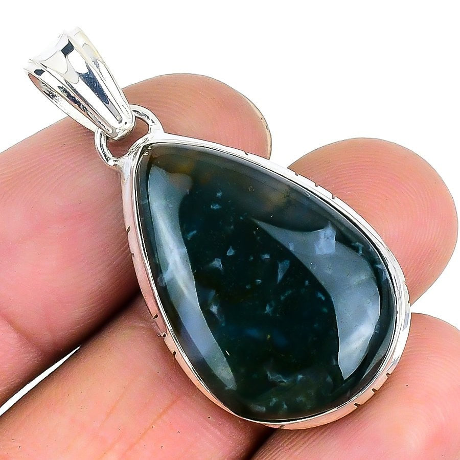Daughters Day Sale Moss Agate Gemstone 925 Silver Ethnic Elegant Pendant Jewelry