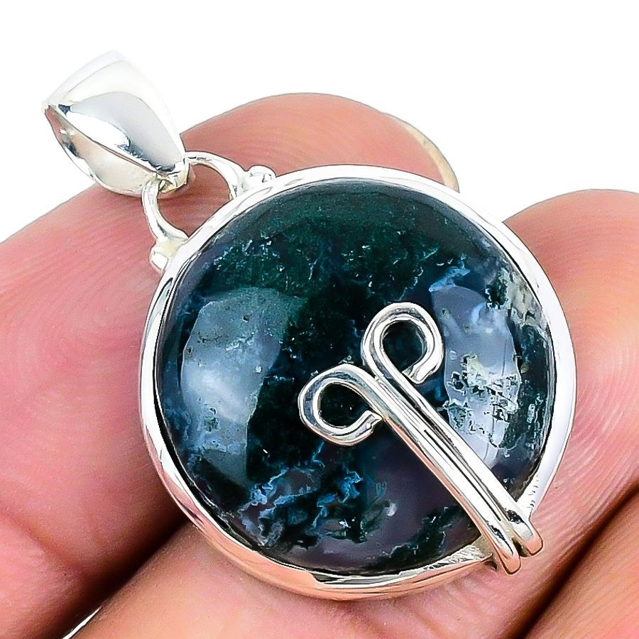 Daughters Day Sale Moss Agate Stone Solid Sterling Silver Bezel Pendant Jewelry