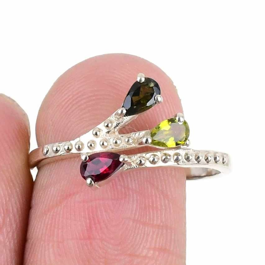 Daughters Day Sale Multi Tourmaline Gemstone 925 Silver Cluster New Ring Size 10