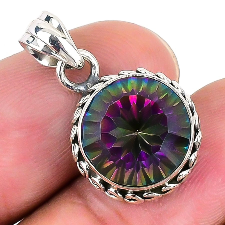Daughters Day Sale Mystic Topaz Gemstone 925 Solid Silver New Engagement Pendant
