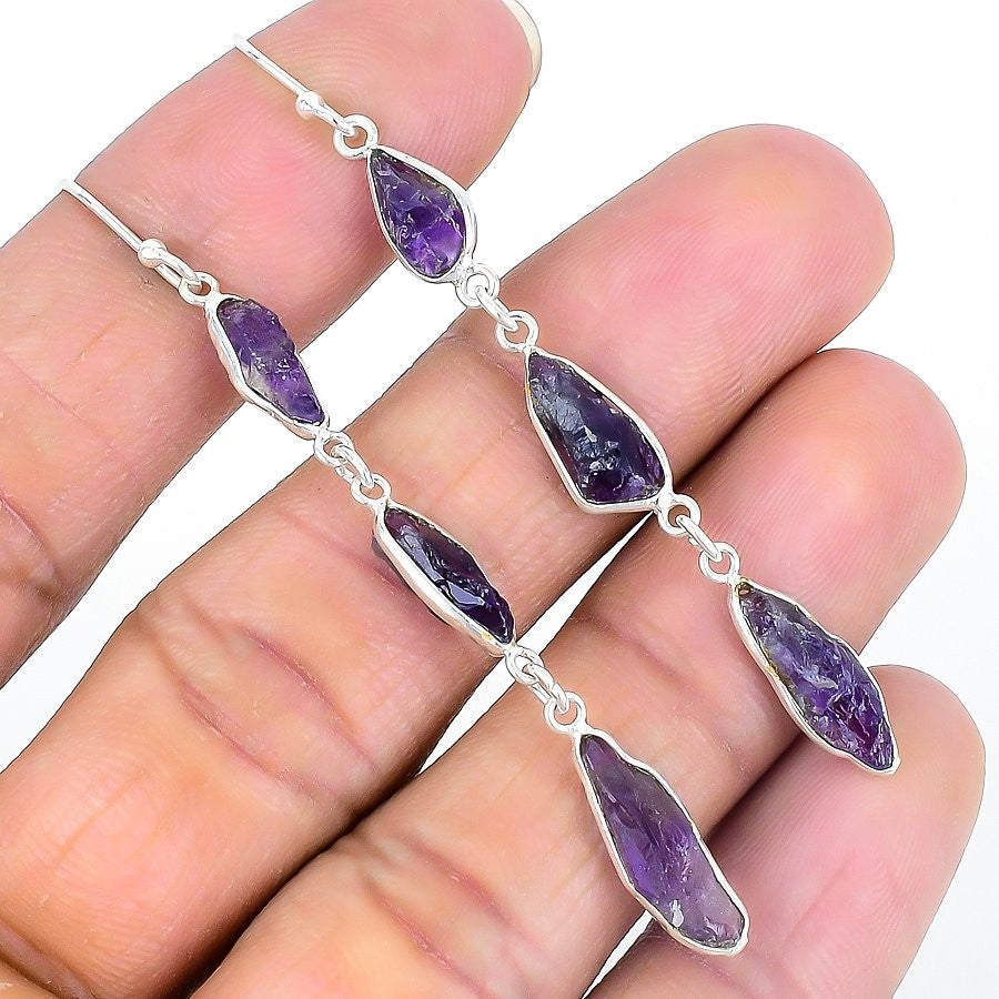 Daughters Day Sale Natural Amethyst Druzy Solid Silver Hook Dangle Drop Earrings