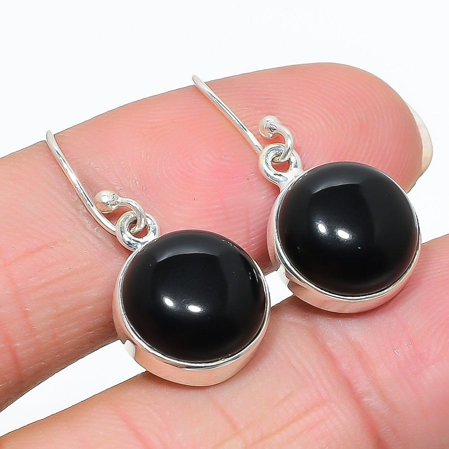 Daughters Day Sale Natural Black Onyx Sterling Silver Drop Engagement Earrings