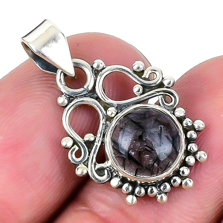 Daughters Day Sale Natural Black Rutile 925 Sterling Silver Wife Pendant Jewelry