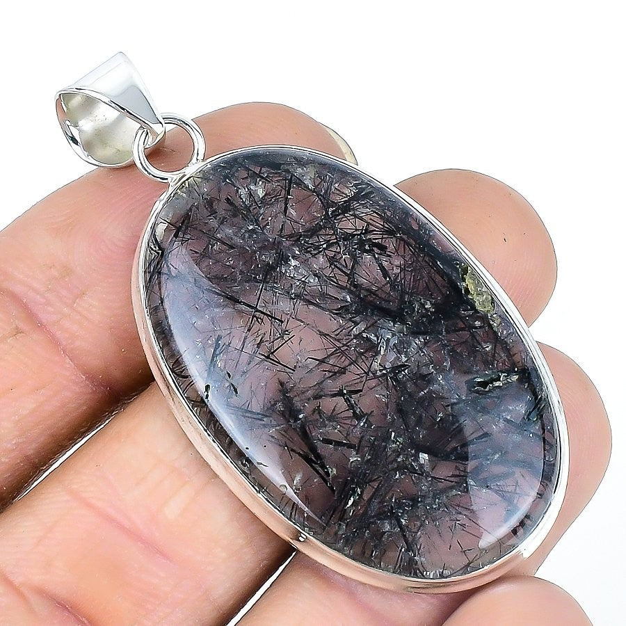 Daughters Day Sale Natural Black Rutile Solid Sterling Silver Pendant Jewelry