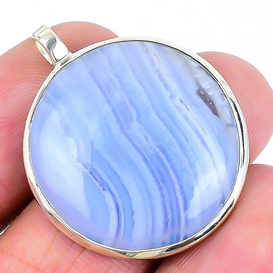 Daughters Day Sale Natural Blue Lace Agate 925 Solid Silver Wife Pendant Jewelry