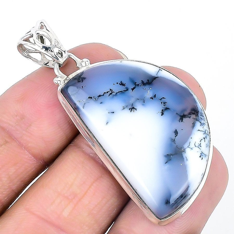 Daughters Day Sale Natural Dendrite Opal 925 Sterling Silver Anniversary Pendant