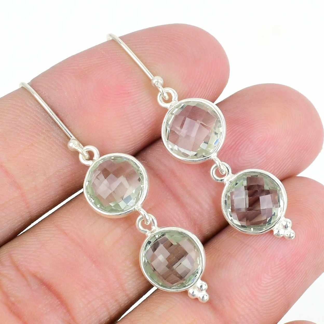 Daughters Day Sale Natural Green Amethyst Sterling Silver Drop Hook New Earrings