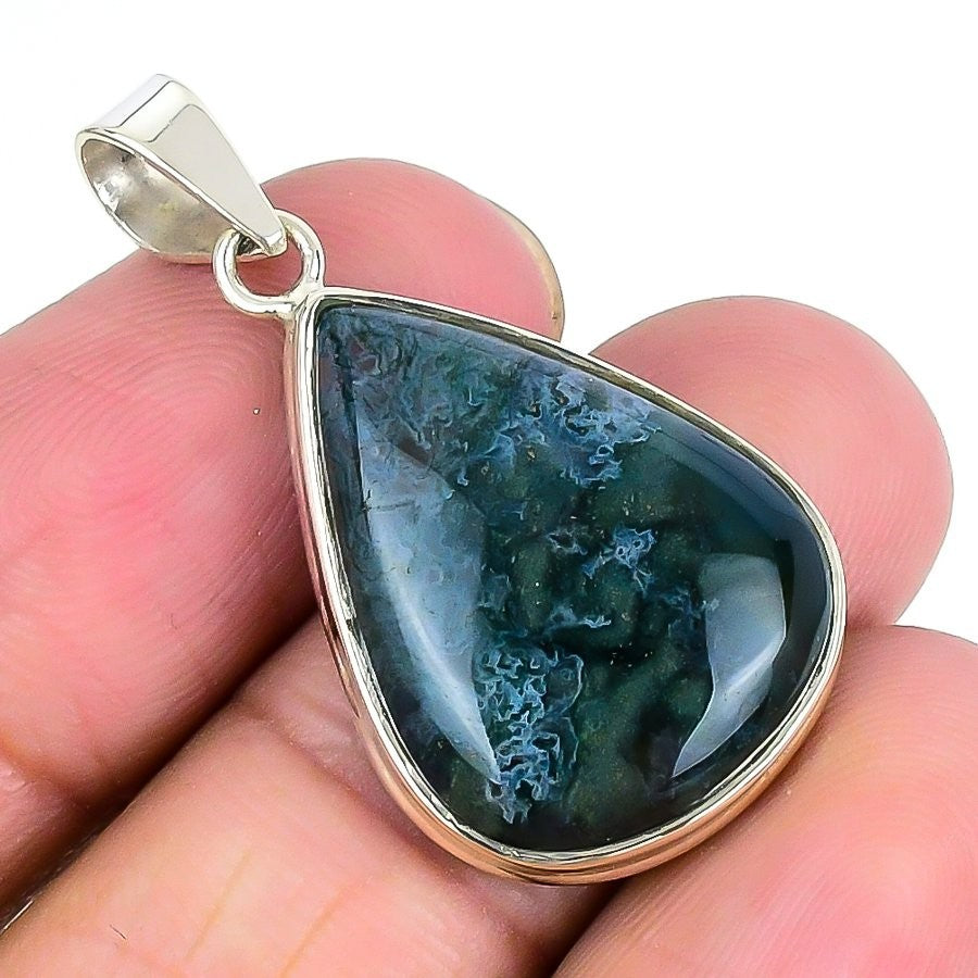 Daughters Day Sale Natural Indian Moss Agate Solid Silver Sister Trendy Pendant