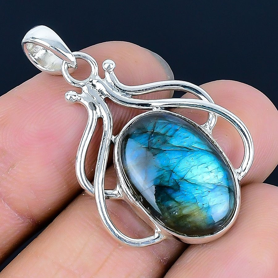 Daughters Day Sale Natural Labradorite 925 Solid Silver Art Deco Wedding Pendant