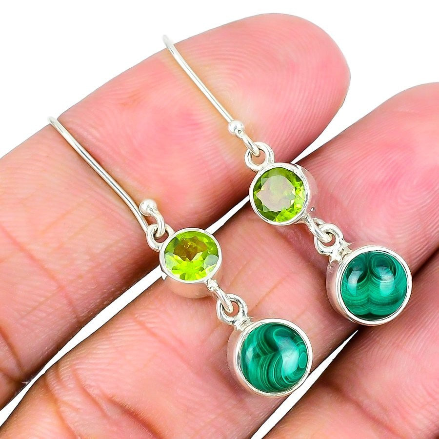 Daughters Day Sale Natural Malachite 925 Silver Mother Drop Hook Ethnic Earrings