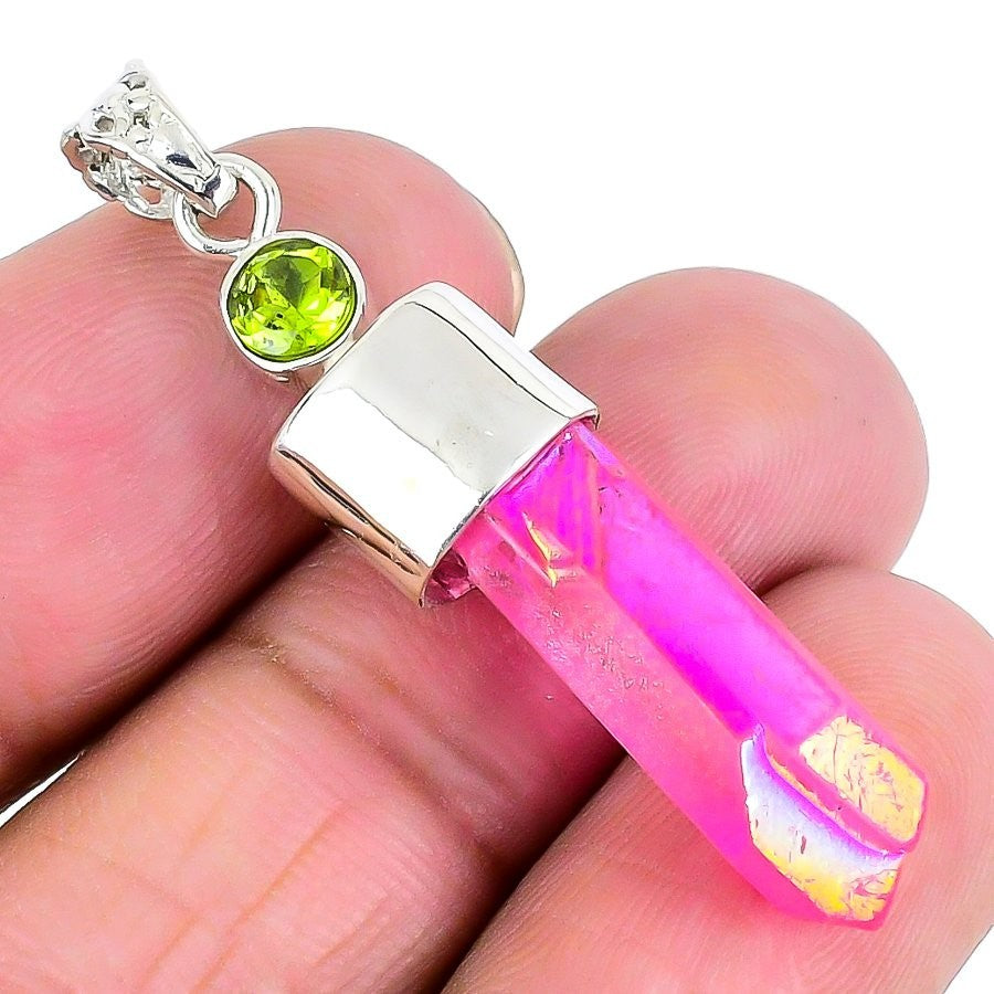 Daughters Day Sale Natural Pink Druzy Boho Pendant Jewelry Solid Sterling Silver