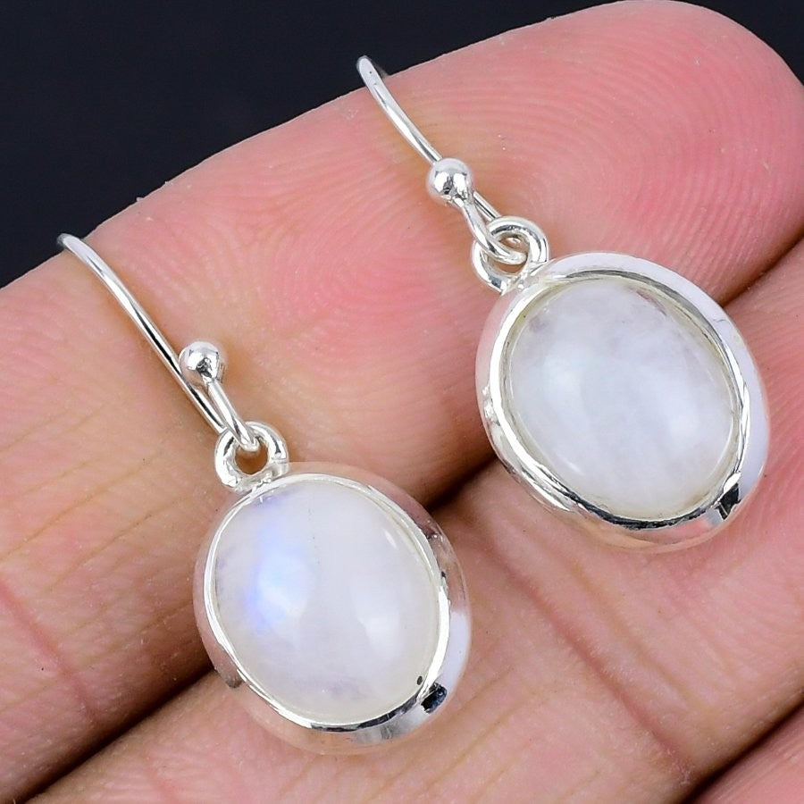 Daughters Day Sale Natural Rainbow Moonstone 925 Silver Hook Dangling Earrings