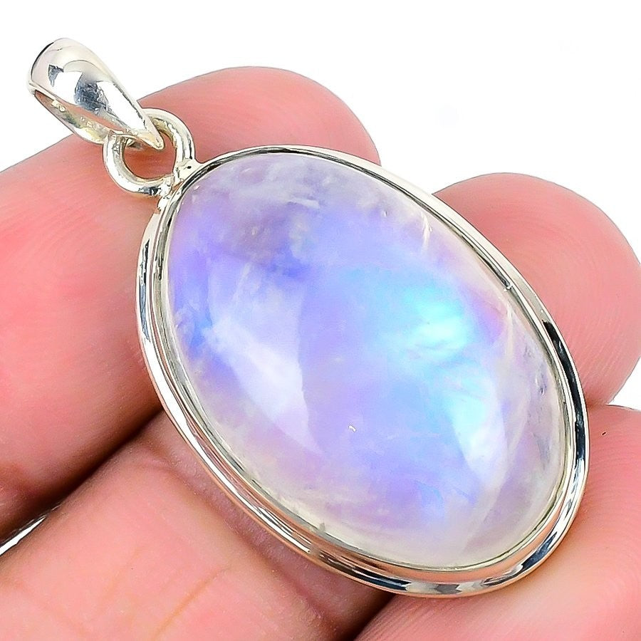 Daughters Day Sale Natural Rainbow Moonstone Crown Chakra Pendant Solid Silver