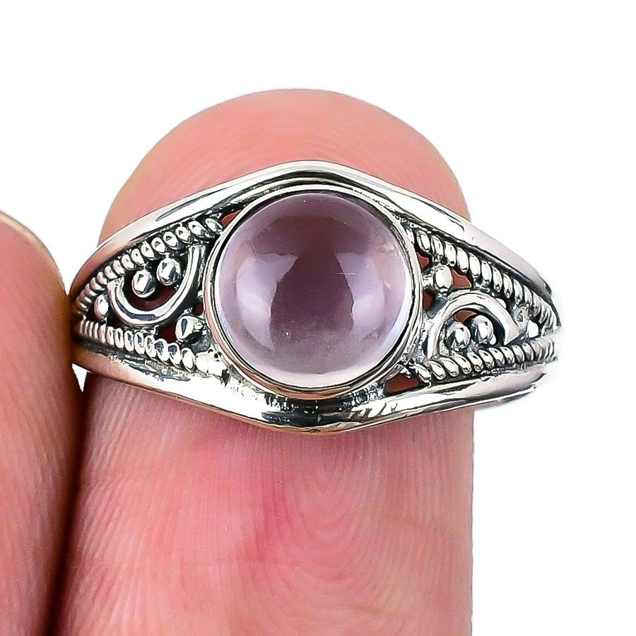 Daughters Day Sale Natural Rose Quartz Solid Silver Statement Ring Jewelry US 9