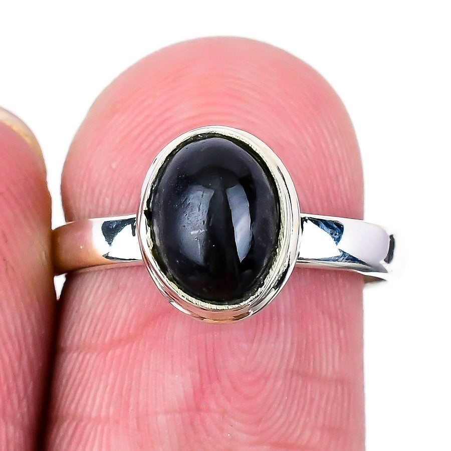 Daughters Day Sale Obsidian Eye Gemstone New Cluster Ring Size 7 Sterling Silver