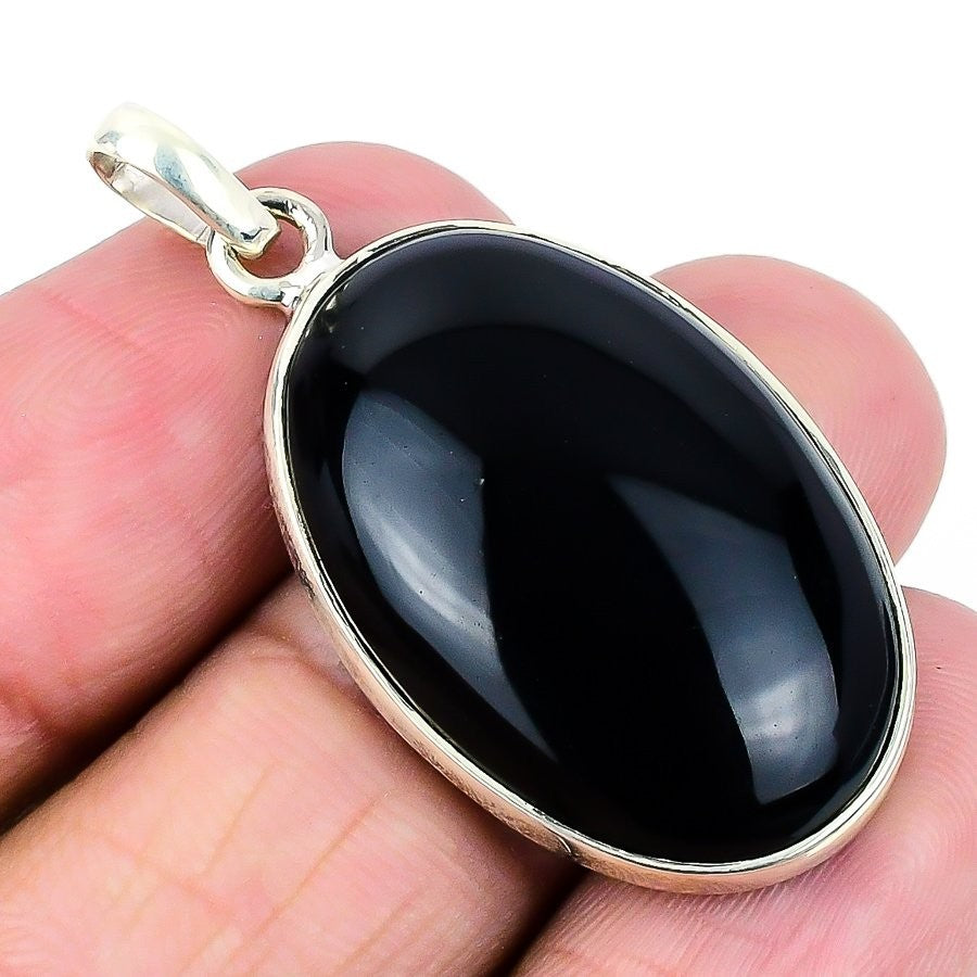 Daughters Day Sale Obsidian Eye Stone 925 Sterling Silver Mother Pendant Jewelry