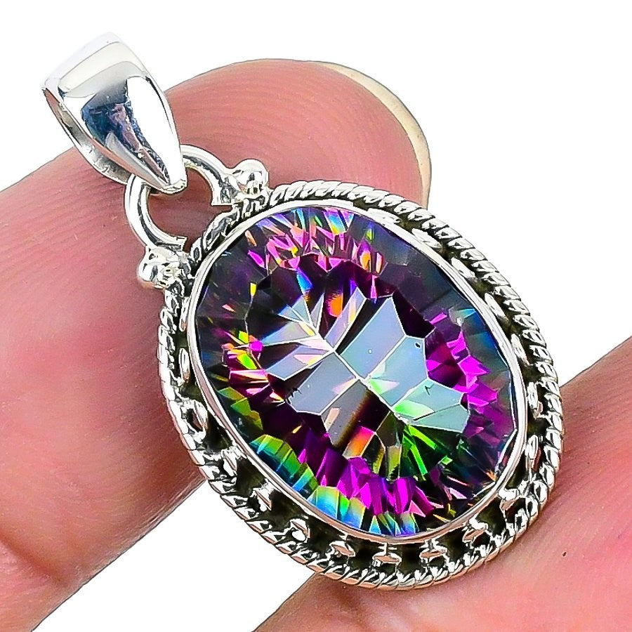 Daughters Day Sale Rainbow Mystic Topaz Gemstone Mother Bezel Pendant 925 Silver
