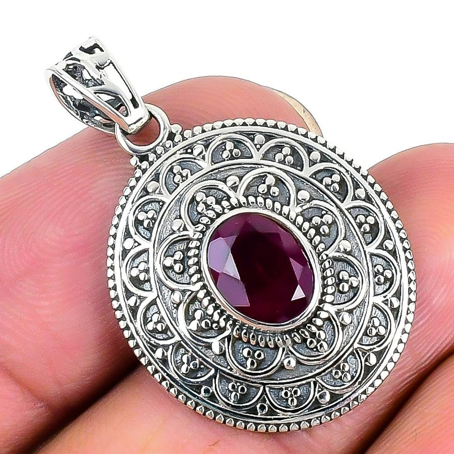 Daughters Day Sale Red Ruby Gemstone 925 Solid Silver Bezel July Pendant Jewelry