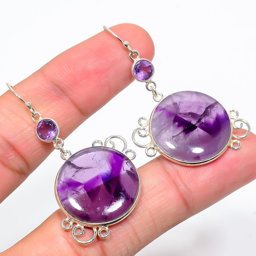 Daughters Day Sale Sage Amethyst Gemstone 925 Solid Silver Boho Dangle Earrings