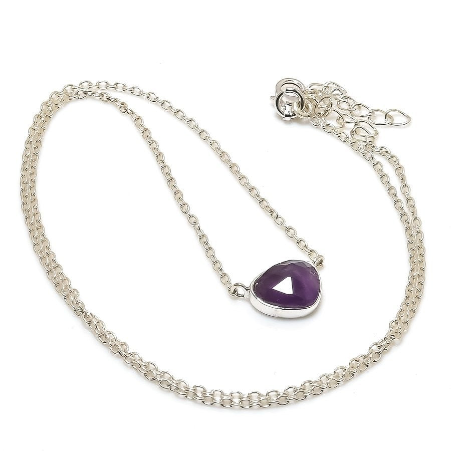 Daughters Day Sale Sage Amethyst Gemstone Solid Sterling Silver Chain Necklace
