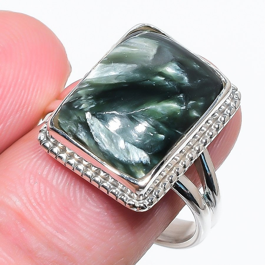 Daughters Day Sale Seraphanite Gemstone 925 Silver Mother Statement Ring Size 10