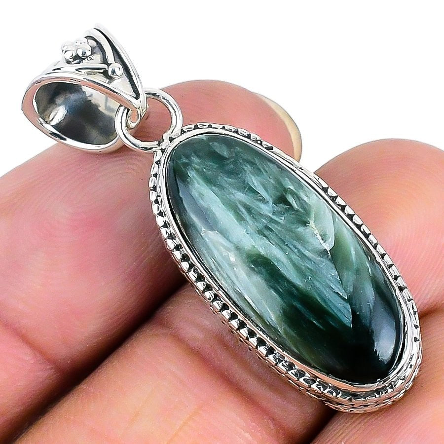 Daughters Day Sale Seraphinite Gemstone Trendy New Pendant Jewelry Solid Silver