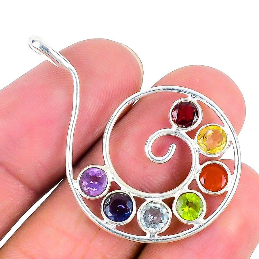 Daughters Day Sale Seven Chakra Gemstone Sterling Silver Sister Pendant Jewelry