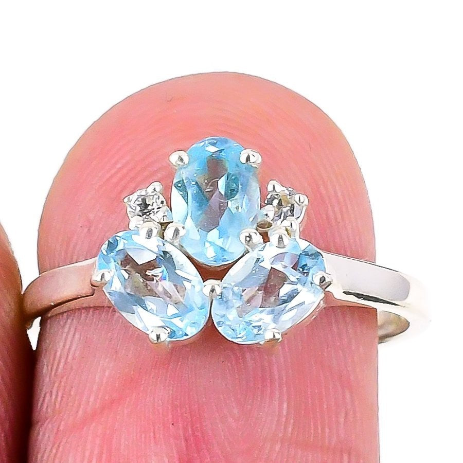 Daughters Day Sale Swiss Blue Topaz Stone Statement Trendy Ring 925 Silver US 8