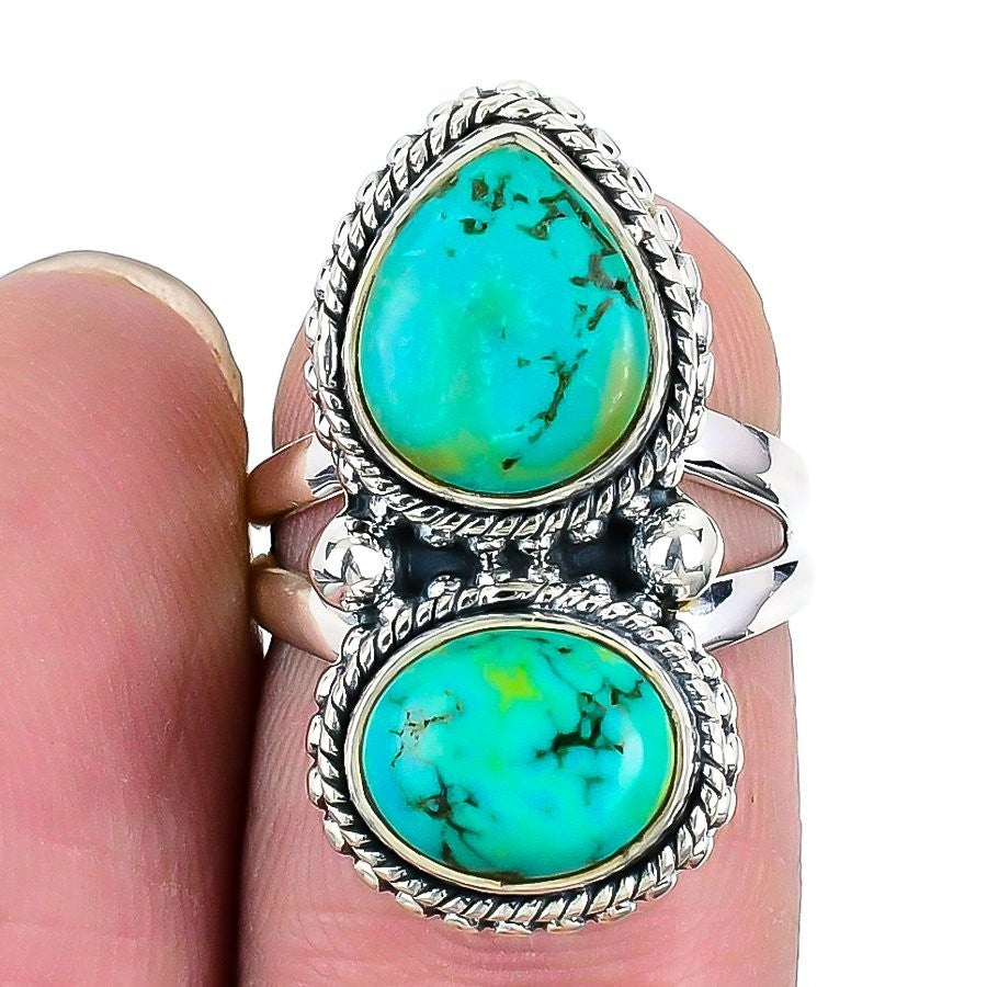 Daughters Day Sale Tibetan Turquoise Stone Solid Silver Wife Statement Ring US 5