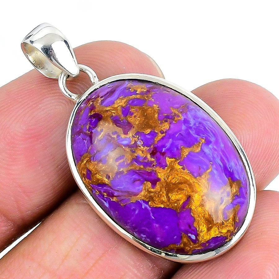 December Copper Purple Turquoise Gemstone Daughters Day Pendant 925 Solid Silver
