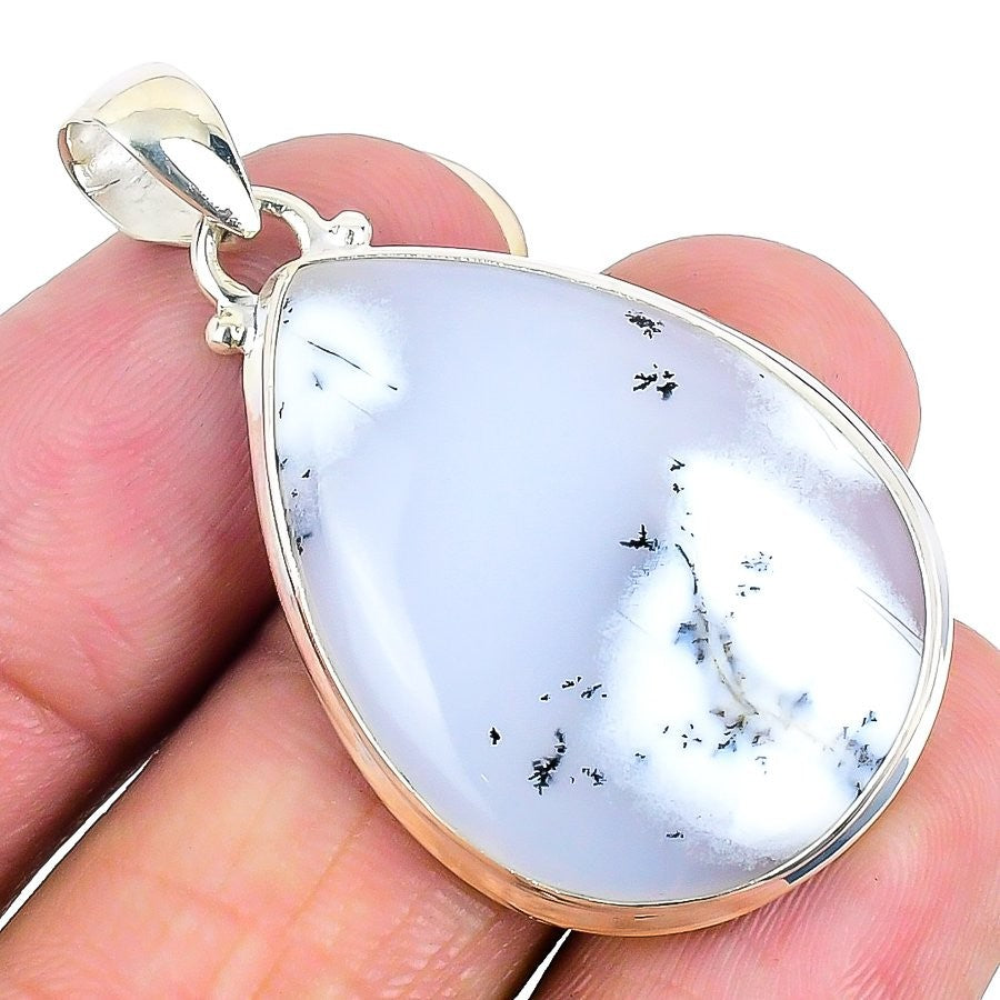 Dendrite Opal Gemstone Engagement Sister Art Deco Birthday Pendant Solid Silver