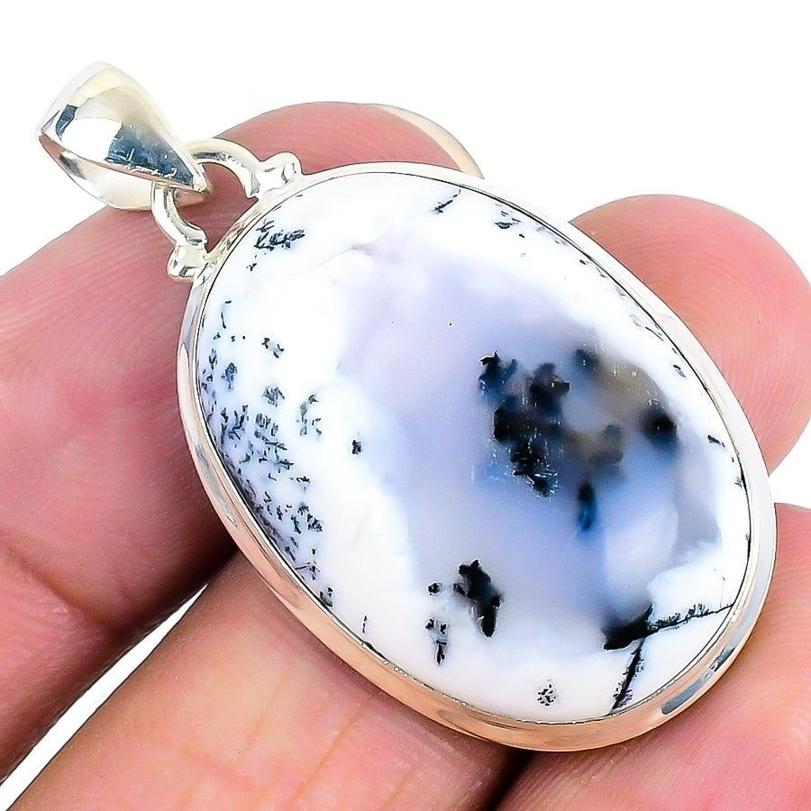 Dendrite Opal Gemstone Handmade Birthday Bezel Wedding Pendant Sterling Silver