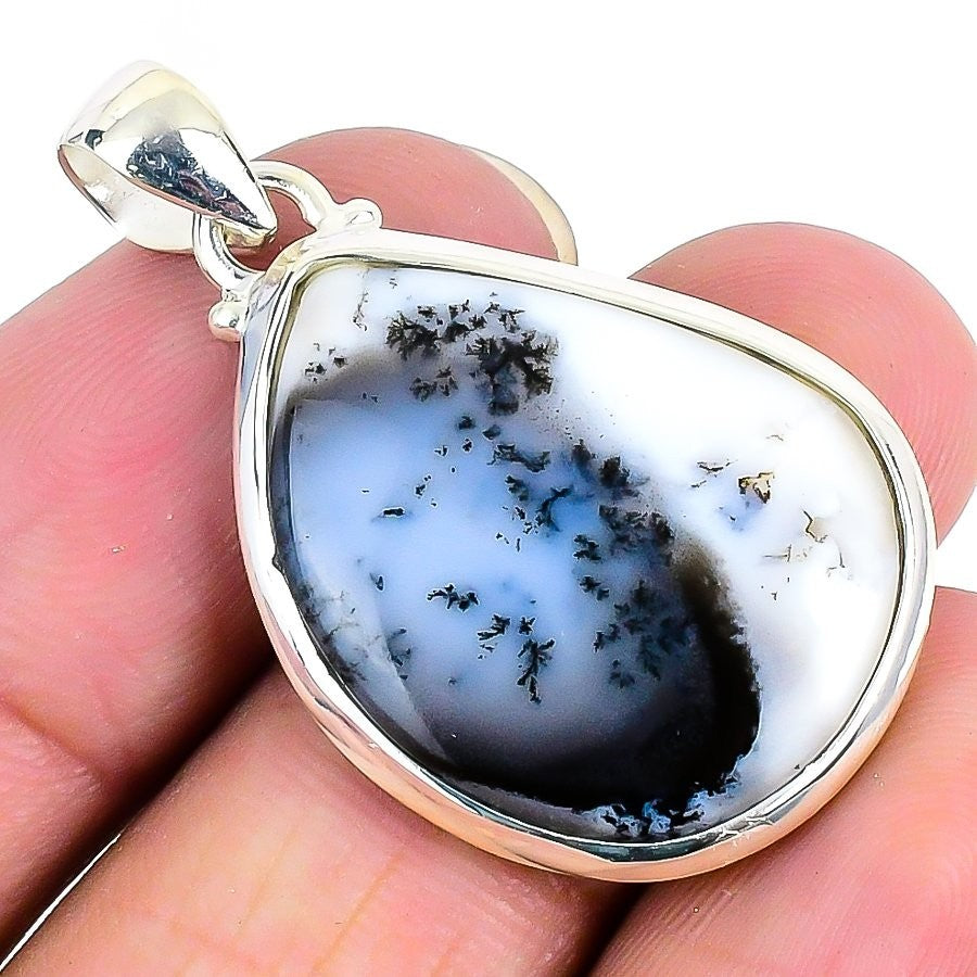 Dendrite Opal Gemstone Solid Silver Art Deco Bezel Mother Sisters Day Pendant
