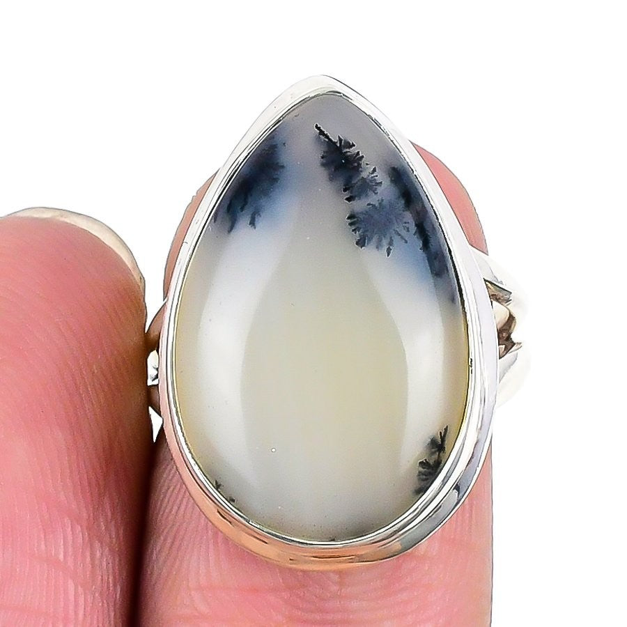 Dendrite Opal Gemstone Solid Silver Statement Boho Handmade Birthday Ring US 6.5
