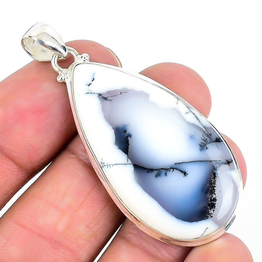 Dendrite Opal Gemstone Solid Sterling Silver Bezel Unique Mother Elegant Pendant