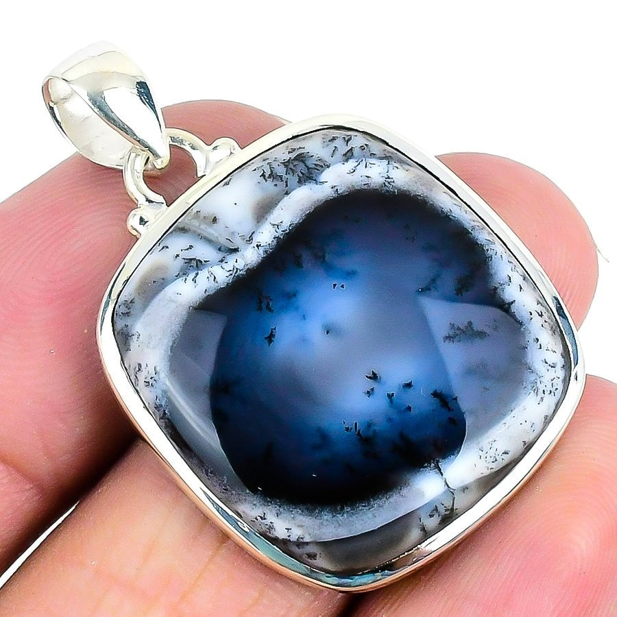 Dendrite Opal Gemstone Sterling Silver Bezel Handmade Anniversary Wife Pendant