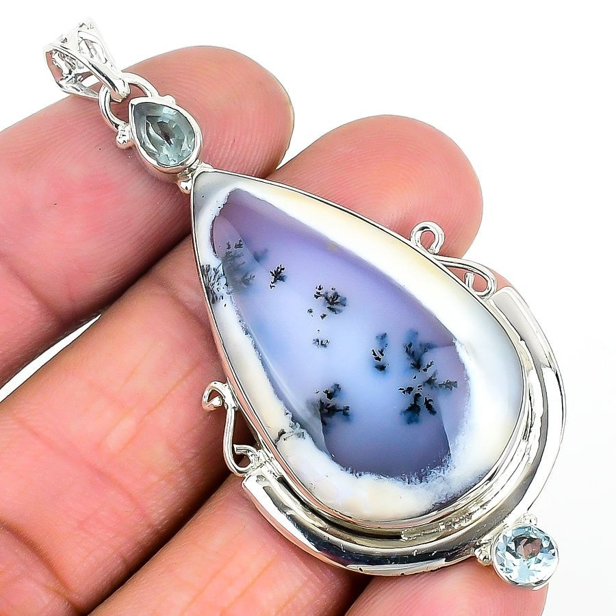 Dendrite Opal Gemstone Sterling Silver Wedding Trendy Daughter Pendant Jewelry