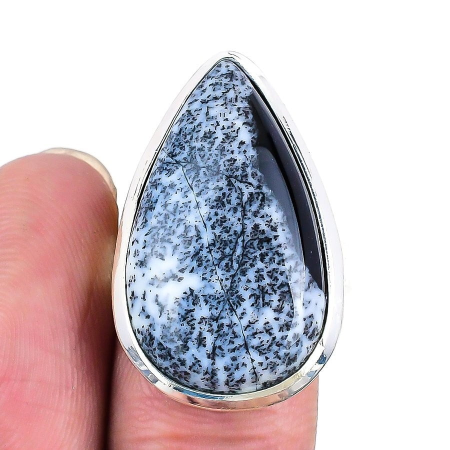 Dendrite Opal Stone 925 Solid Silver Art Deco Unique Statement Bezel Ring US 7