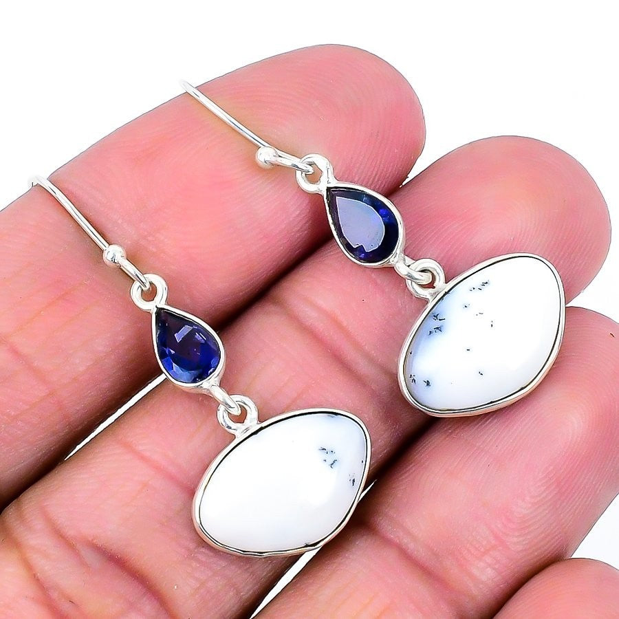 Elegant Dendrite Opal Stone 925 Sterling Silver Hook in 925