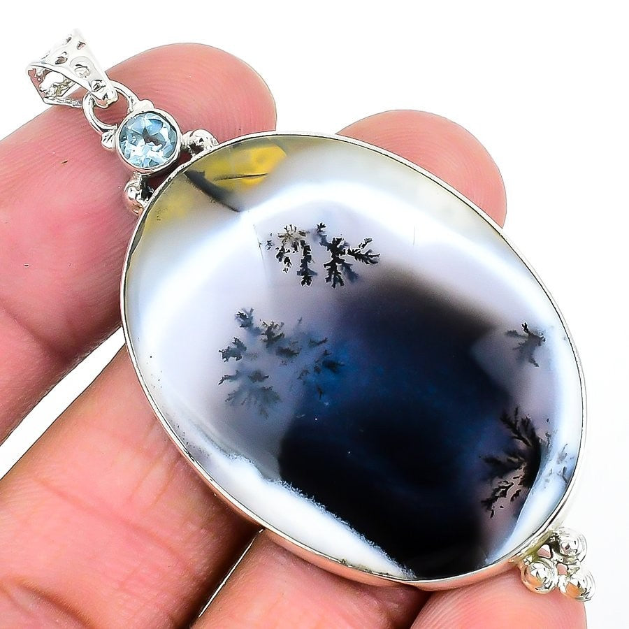Dendrite Opal Stone 925 Sterling Silver Sister Engagement Unique Pendant Jewelry